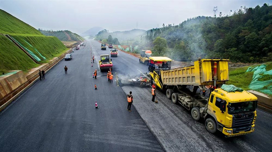2019年8月,宜春經(jīng)開(kāi)區(qū)S311路面攤鋪現(xiàn)場(chǎng),工友們輔助路面兩側(cè)的分料、補(bǔ)窩等作業(yè)